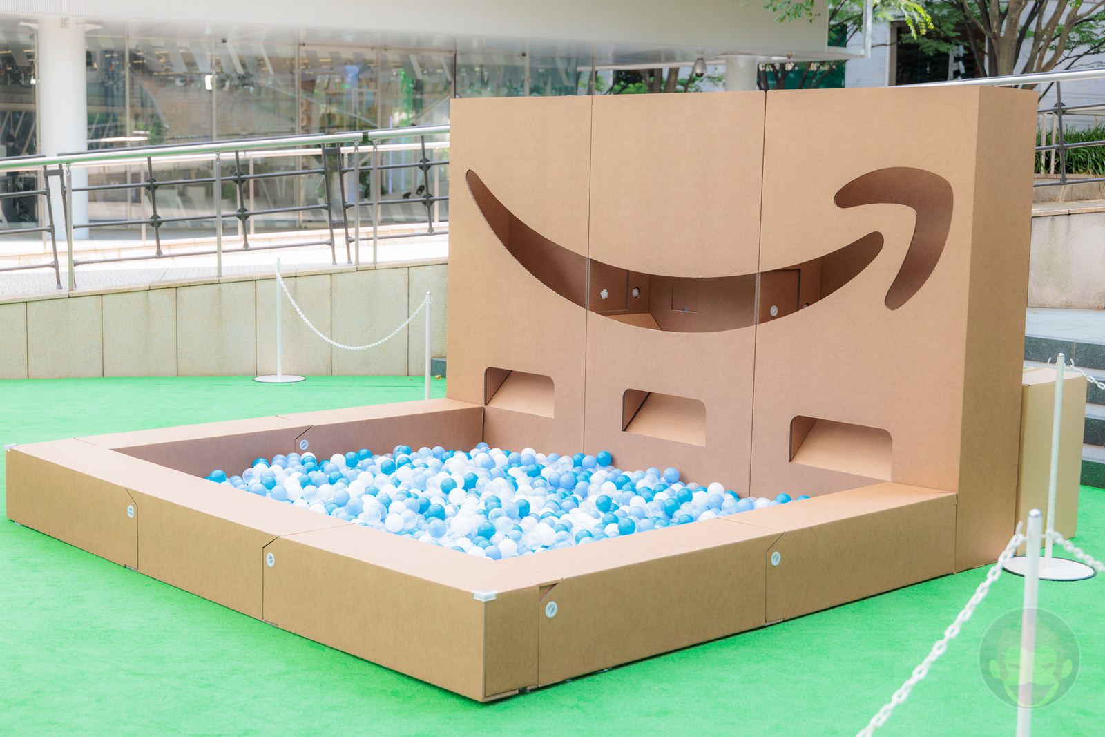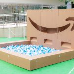 「Amazon プライムデー フェス」という名前の通り、会場は野外フェスのような雰囲気に仕上がっている。今回のイベントでは迷路、すべり台、ボールプール、トラックの模型などが用意されており、これらすべてがダンボールで作られているのが印象的だ。