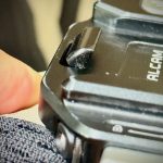 Falcam F38 クイックリリースカメラクリップ V2は、カメラのクイックリリースプレートが奥にあるレバーを押し込むことで、手前にあるツメが起き上がりクイックリリースプレートを挟み固定する仕組み。実際に検証してみると、本来は左右にあるレールに沿わせながら奥のレバーを押すことが想定されているが、左右のレールを通らなくても簡単に奥のレバーを押すことができることを確認した。