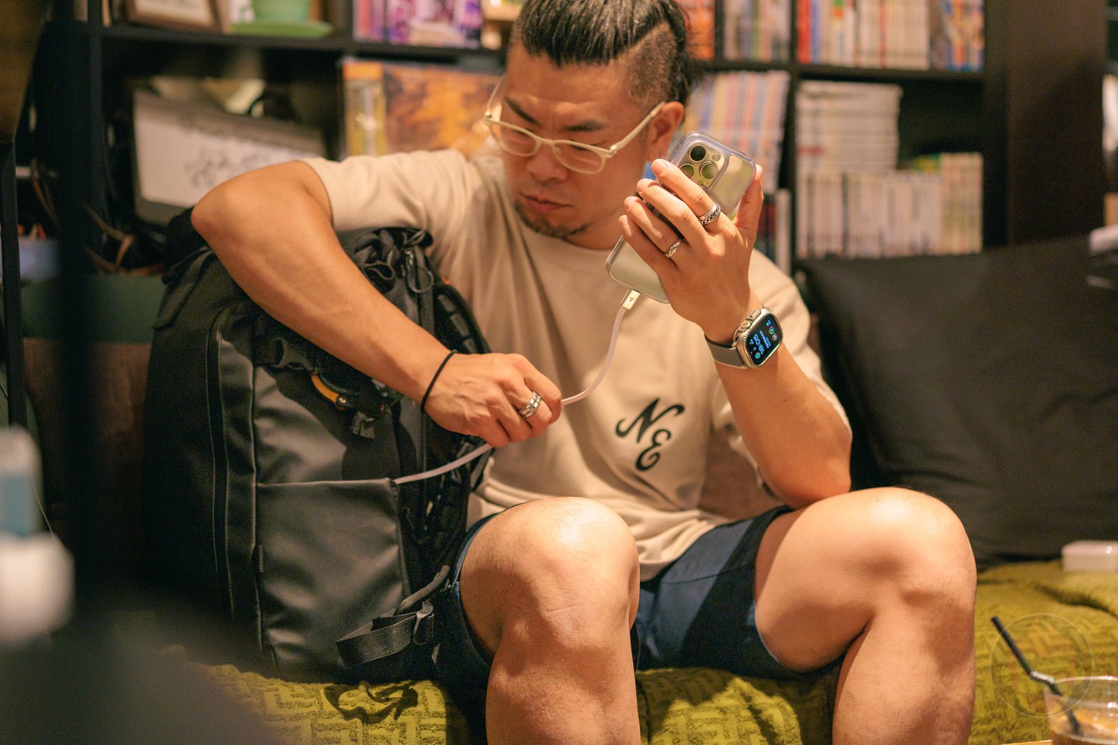 しかし「いざという時」を意識した準備に余念がない僕はバックパックの横の薄いポケットにモバイルバッテリーを入れてあるのだ。