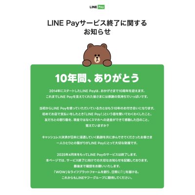 速報:LINE Pay、2025年4月30日(水)にサービス終了へ