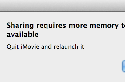 「iMovie ’11 (9.0.9)」で「共有には使用可能な容量より多くのメモリが必要です」と表示された時の対処法