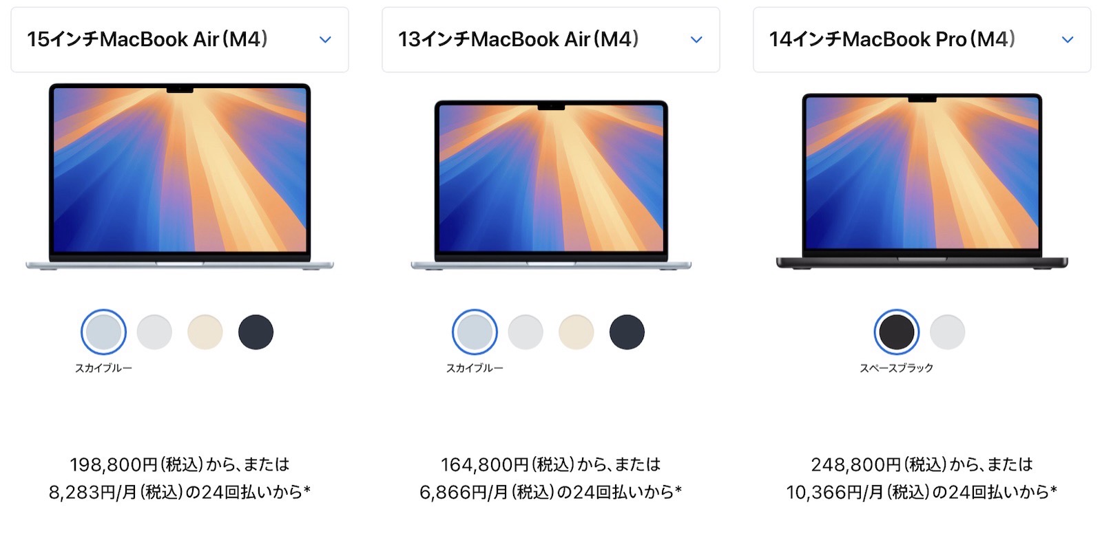 カラーバリエーションも注目に値する。MacBook Airは新色のスカイブルーを含む4色展開で、個性的な選択が可能だ。MacBook Proは定番のスペースブラックとシルバーの2色となっている。