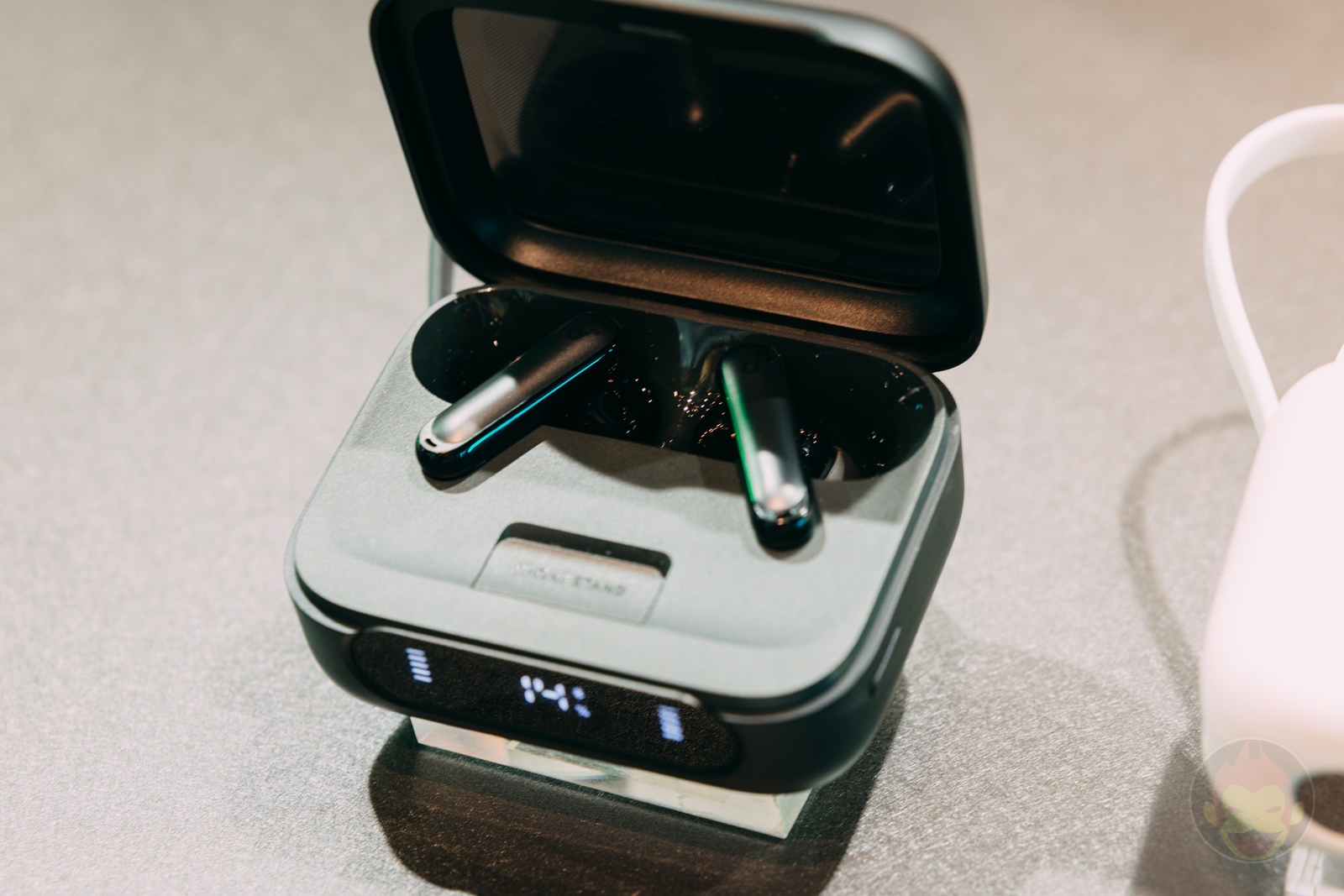 充電ケースはスマートフォンスタンドとしても機能し、動画視聴時に便利な設計となっている。蓋を開けると自動的にスタンドが展開され、閉じる際は自動的に収納される特許取得済みの機構を採用している。