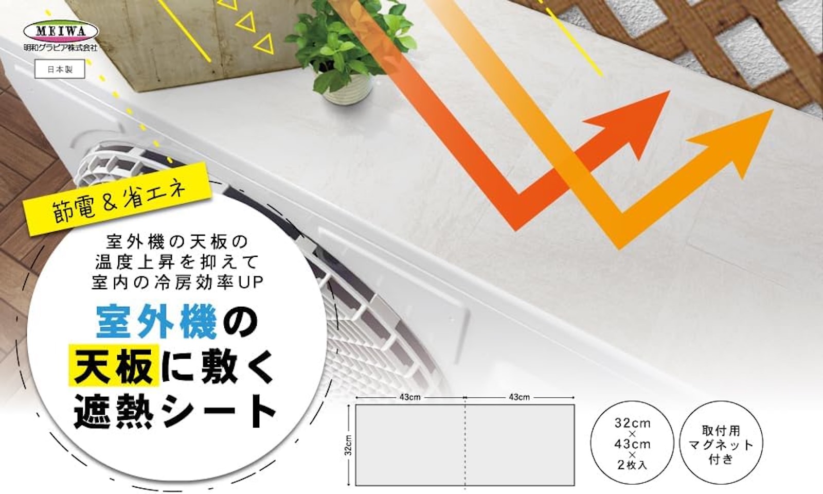 設置方法も極めて簡単で、室外機の下に敷くだけで効果を発揮する。ハサミやカッターナイフで簡単にカットできるため、どんなサイズの室外機にも対応可能だ。商品には32cm×43cmのシート2枚に加え、取付用マグネット8枚が付属している。