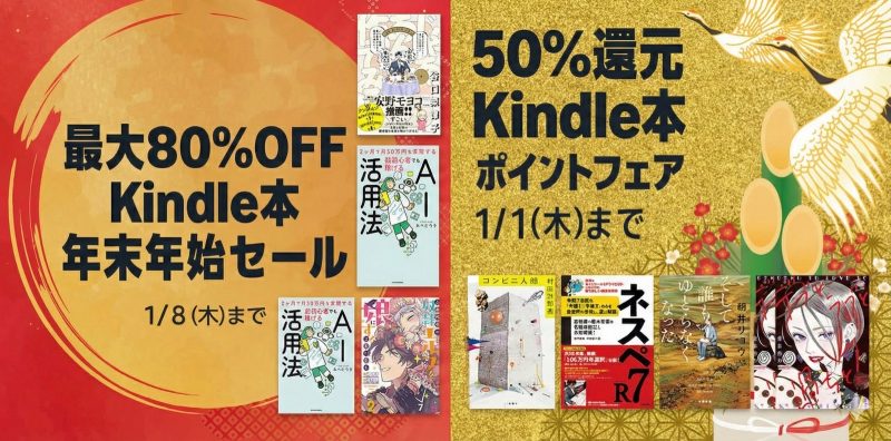 Kindleストア「年末年始、本気出すわ」最大80%オフで6万冊以上が大放出