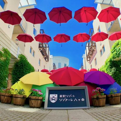 「リゾナーレ八ヶ岳」の通りを300本の傘が彩る「アンブレラスカイ2018」が美しかった